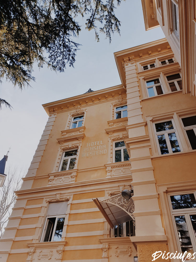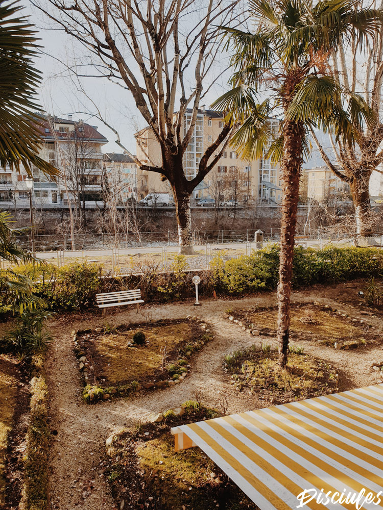 All’accoglienza troviamo una città con bellissimi edifici in stile liberty, ed in questo caso il giardino dell’Hotel Westend nel quale abbiamo soggiornato aveva una vista sul cortile interno e sul torrente. Uno spettacolo in inverno, da ritornare in primavera!
