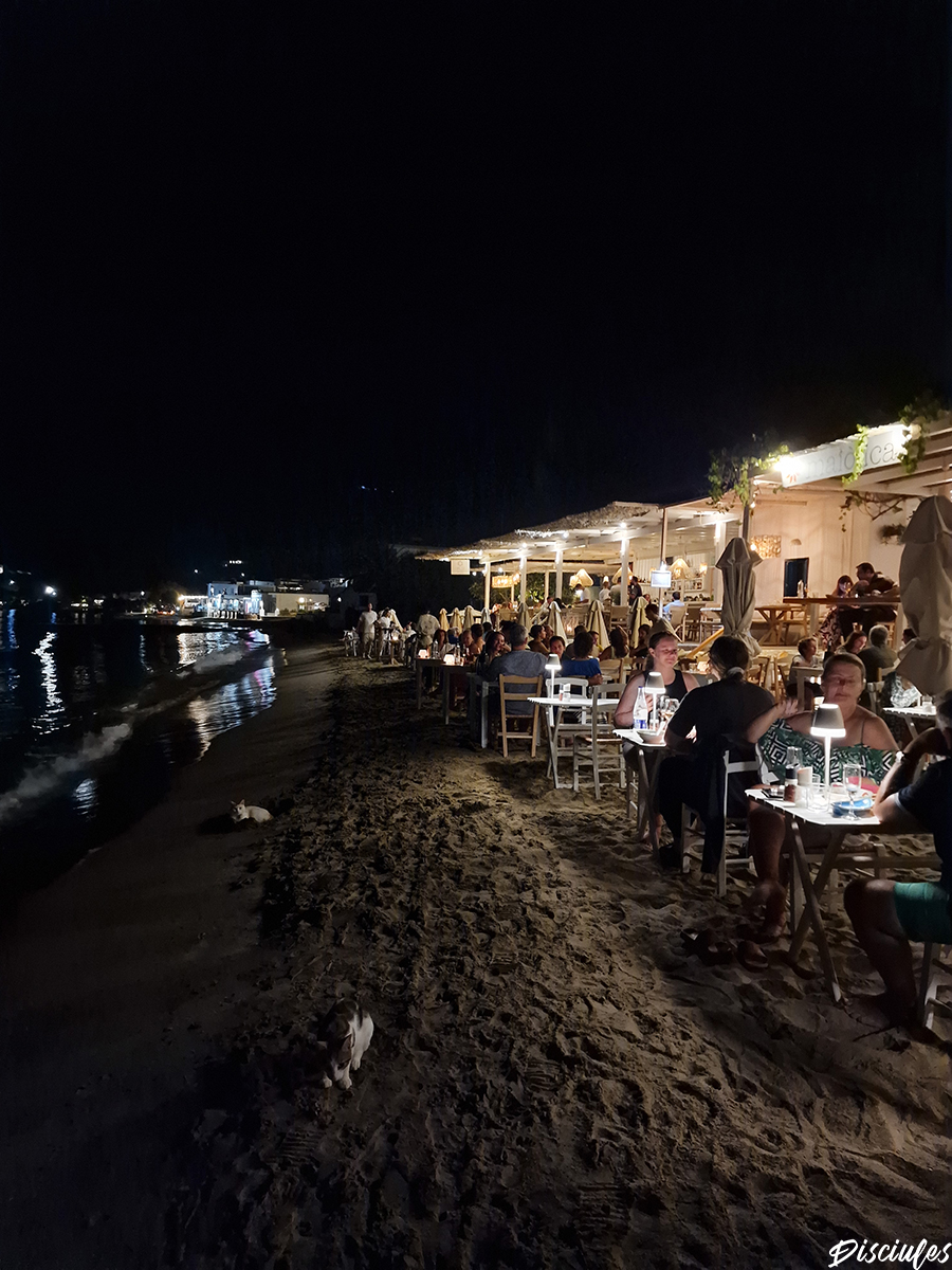Il porto e Platis Gialos è la zona dove si concentrano la maggior parte dei ristoranti con un prezzo medio-alto, con la necessità di prenotare anche qualche giorno prima durante i mesi estivi per riuscire a trovare posto.
