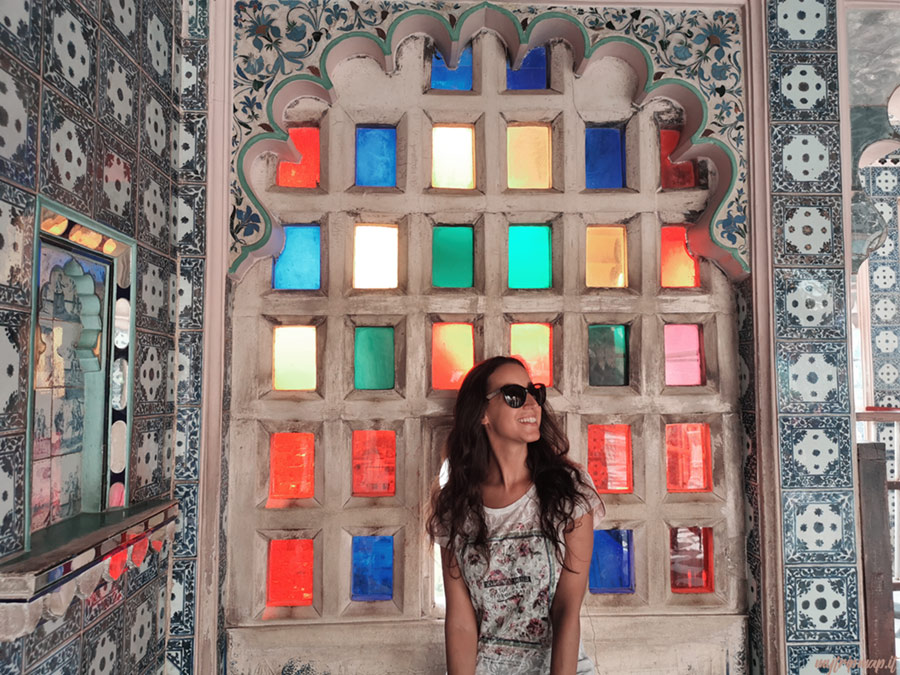 Qui visitiamo il City Palace, che si affaccia sul Lago Pichola ed è un complesso monumentale formato da 11 palazzi, cortili e giardini, abbelliti dai famosi mosaici con i motivi a pavone.