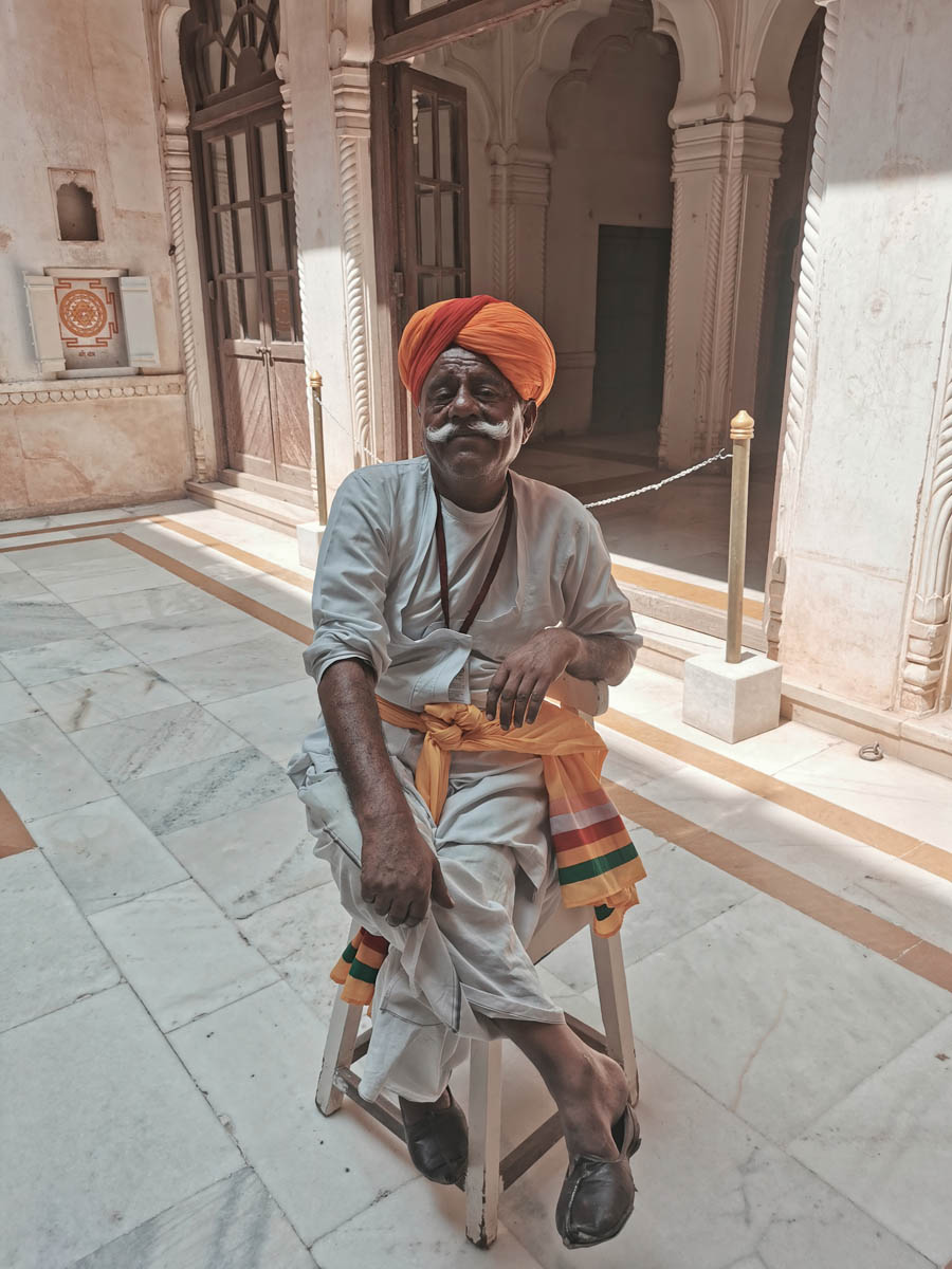 L’ottavo giorno lo abbiamo dedicato alla visita del forte e della città blu. Abbiamo fatto un giro per il centro della città ammirando l’orologio ed il parco Mandore Garden che si trova adiacente al forte, caratterizzato da templi e dalla presenza di scimmie. Per la cena il suggerimento è quello di provare il Mehran Terrace in cima al forte Mehrangarh (è necessario prenotare – tel: 2548790); da qui avrete una vista spettacolare!.
